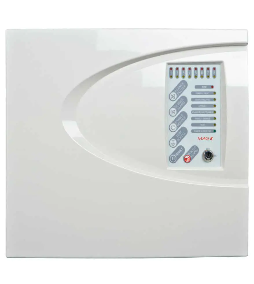 MAG8P es un panel de detección e indicación de incendios convencional certificado según EN54-2 / 4.