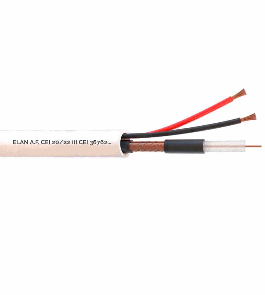 Cable compuesto por un RG 59 de 75 O y dos conductores de alimentación de 0,75 mm² para CCTV video cámaras e instalaciones que requieran una Linea de video y otros servicios en un mismo cable. Puede ser utilizado para la conexión de video cámaras para el control de procesos y video seguridad.