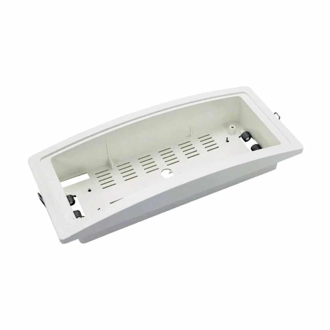 - Base para montaje empotrado en falso techo para luminarias de emergencia no mantenidas o mantenidas.