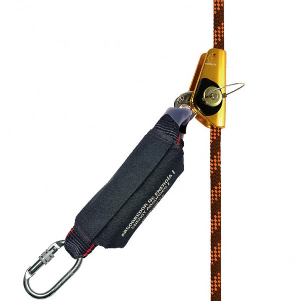 Sistema anticaídas de Climax con absorbedor de energía integrado. Este equipo debe ser usado junto con cuerdas de 11mm de diámetro. El anticaída Otto permite asegurar al trabajador a un punto de anclaje, evitando caídas desde determinadas alturas.