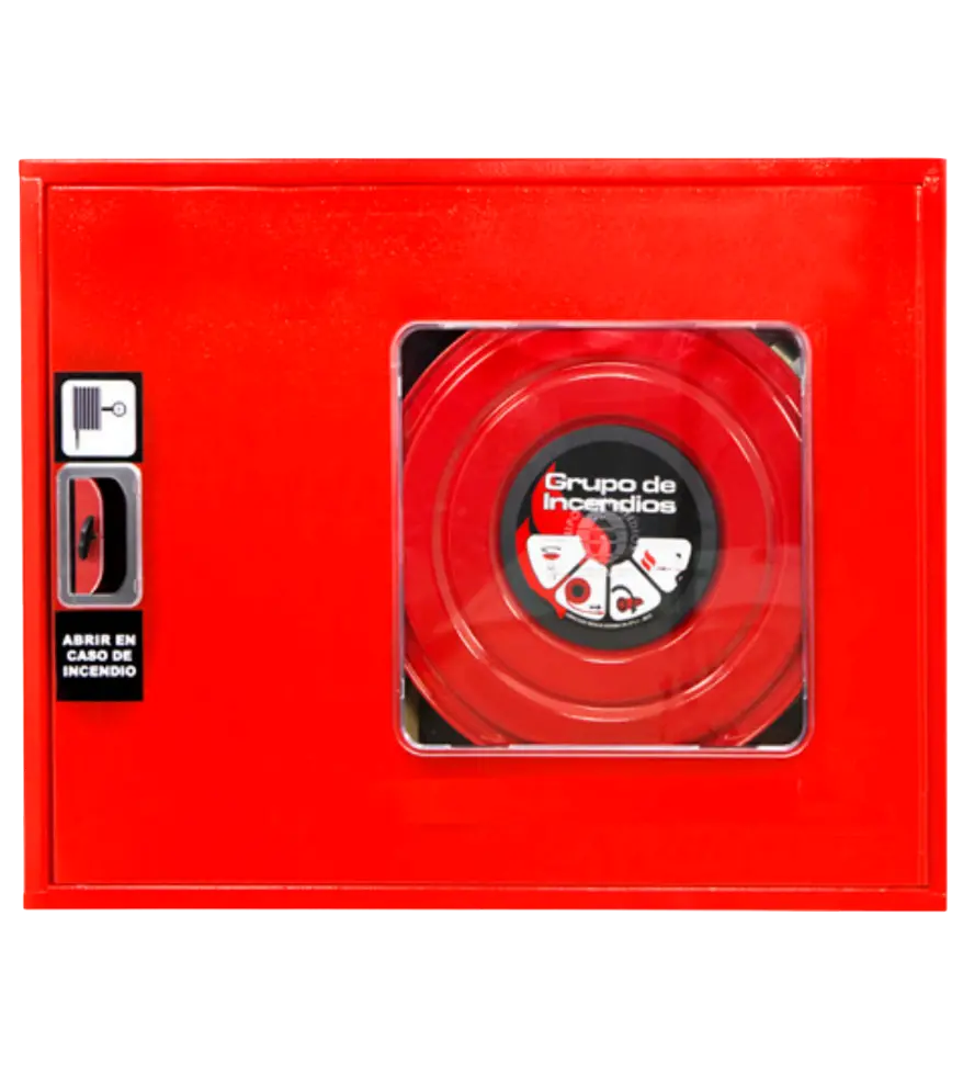 | Carrete | Fabricado en acero DC01 pintado en poliéster rojo RAL 3000, de Ø525mm. Interior de poliamida-fibra de vidrio. |