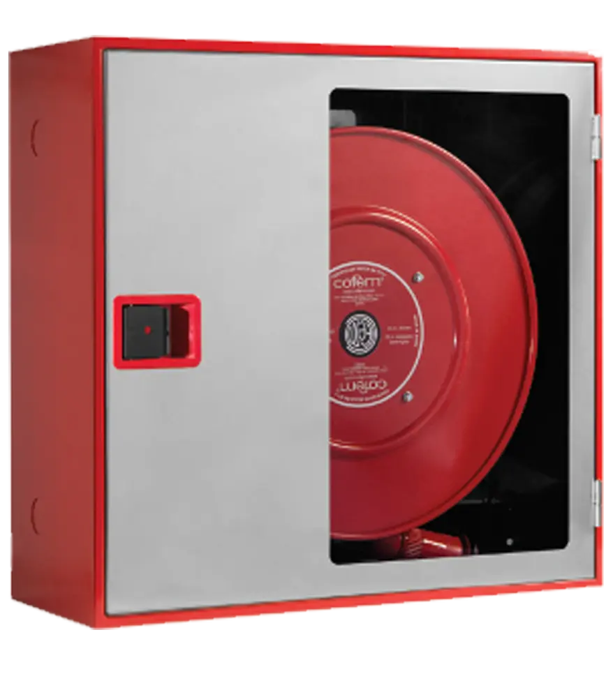 Boca de incendio Equipada Ø25 mm según norma UNE/EN 671-1 y 20 m de manguera semirrígida fabricada según UNE 694.