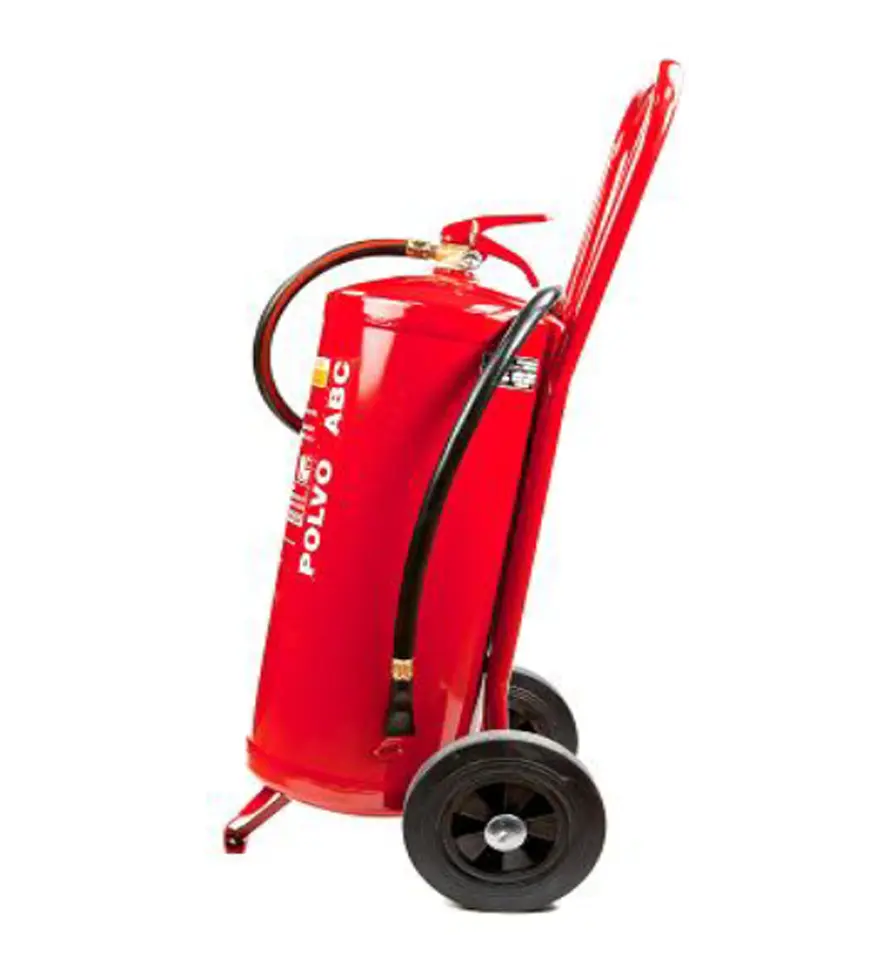 Carro extintor móvil de 25 kg polvo químico seco para marina y presión incorporada. Eficacia A IB C del fabricante AUCA.
