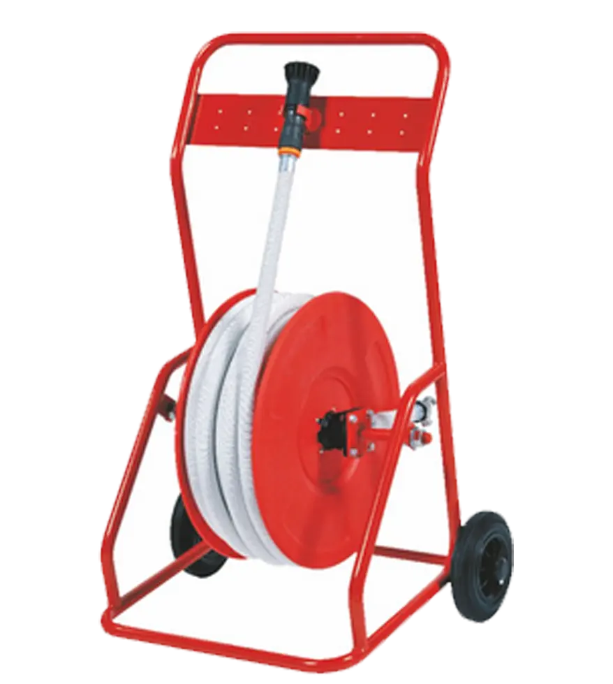 El carro porta-devanaderas para mangueras contra incendios de 25 mm y con 1 devanadera de disco de 490 mm para la colocación de las mismas.