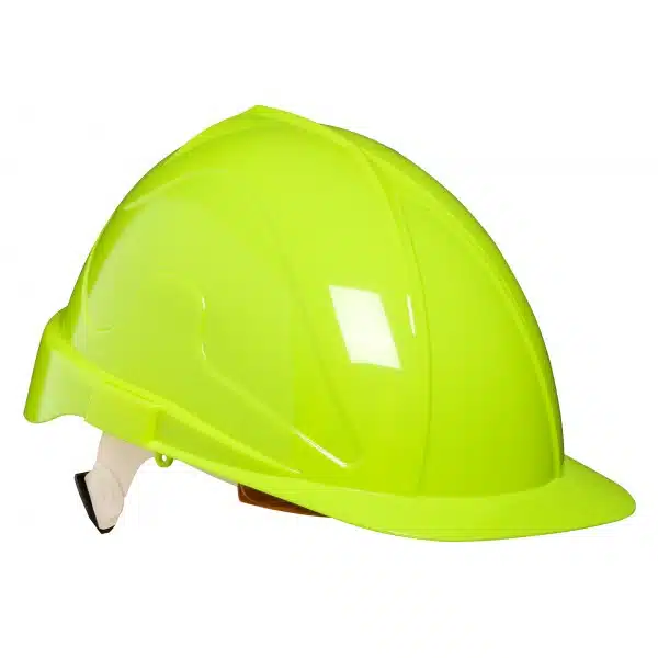 Casco de obra Climax TXR (Tirreno) en color amarillo de alta visibilidad. Banda antisudor. Protección eléctrica hasta 440Vac. Referencia 08433TIRREAM