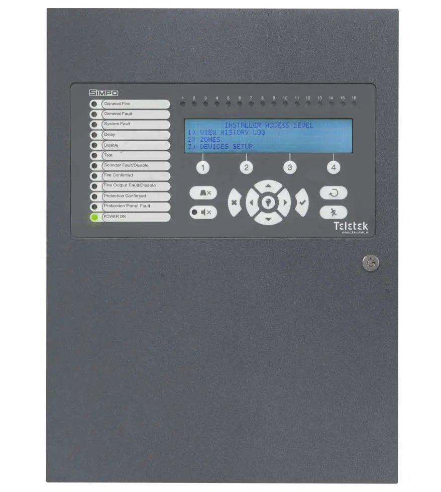 SIMPO es la solución perfecta para instalaciones direccionables más pequeñas. El panel direccionable admite hasta dos bucles con cobertura de 48 zonas. Se podrían conectar 250 dispositivos que operan en el protocolo de comunicación de Teletek Electronics a cada lazo. El estado del sistema se visualiza mediante una pantalla LCD y una indicación LED. Se pueden conectar hasta 64 paneles Simpo en red redundante RS485 o red Ethernet. Está disponible la programación directa con el software ProsTE. El panel viene en una carcasa de metal con una pantalla LCD multilingüe y una lámina frontal para facilitar la personalización.