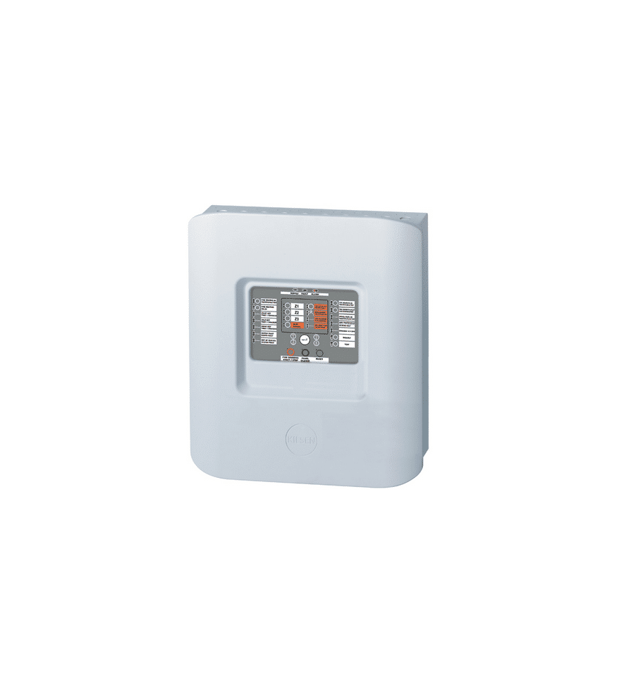 Central de detección y extinción de incendios programable para el control de 1 riesgo (2 zonas de detección cruzada y 1 zona libre – pulsador de paro, de disparo, de pausa, monitorización de presostato y salidas para sirena de pre-alarma, señalizador de extinción disparada, control de puerta abierta y disparo de extinción).