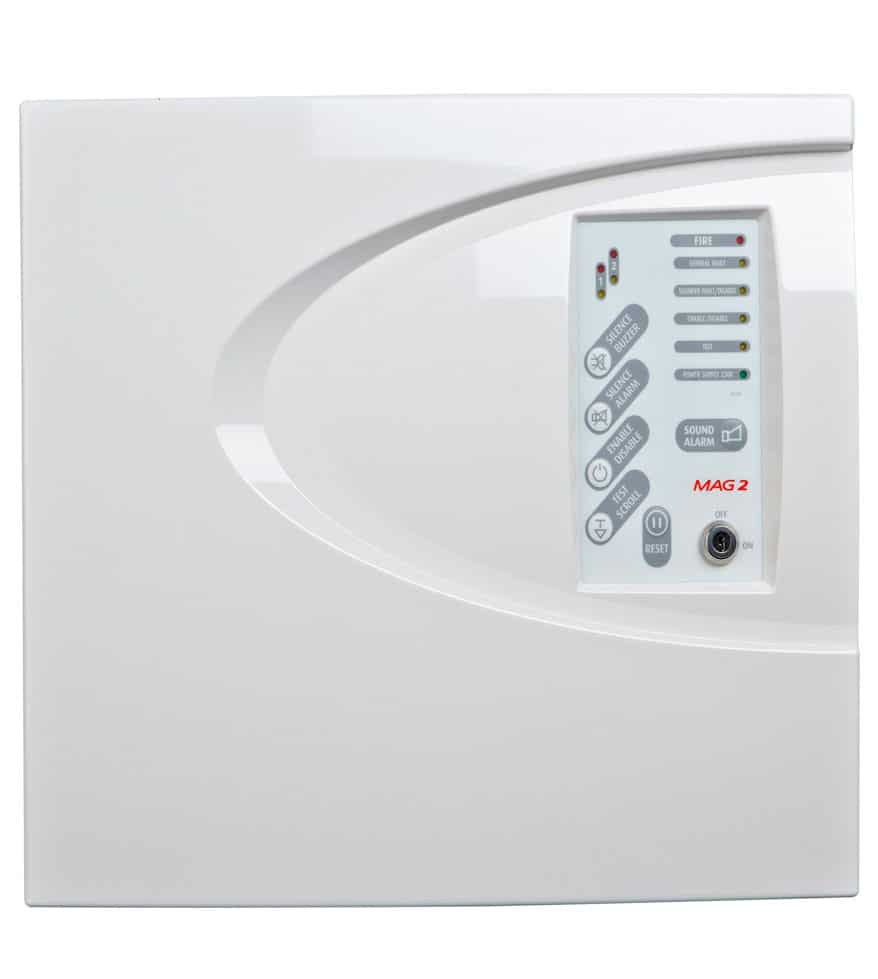 MAG2P es un panel de alarma contra incendios convencional certificado según la norma EN54-2 / ​​4, que proporciona 2 zonas fijas. Se pueden conectar hasta 20 detectores de incendios (32 series SensoMAG ) a cada zona de incendio. Se puede conectar un número ilimitado de pulsadores a cada una de las zonas de incendio.