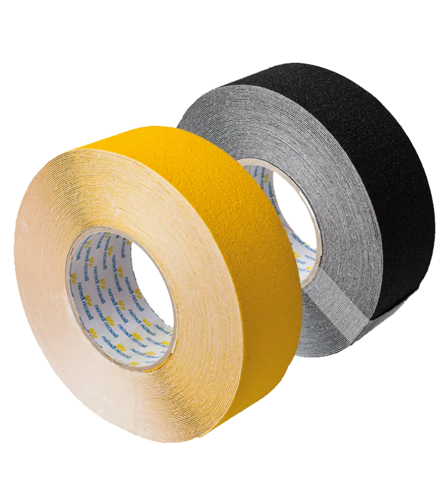 La cinta antideslizante abrasiva. Uso industrial. Disponible en un ancho de 50 mm. Disponible en varios colores. Se sirve en bobinas de 18,3 metros.