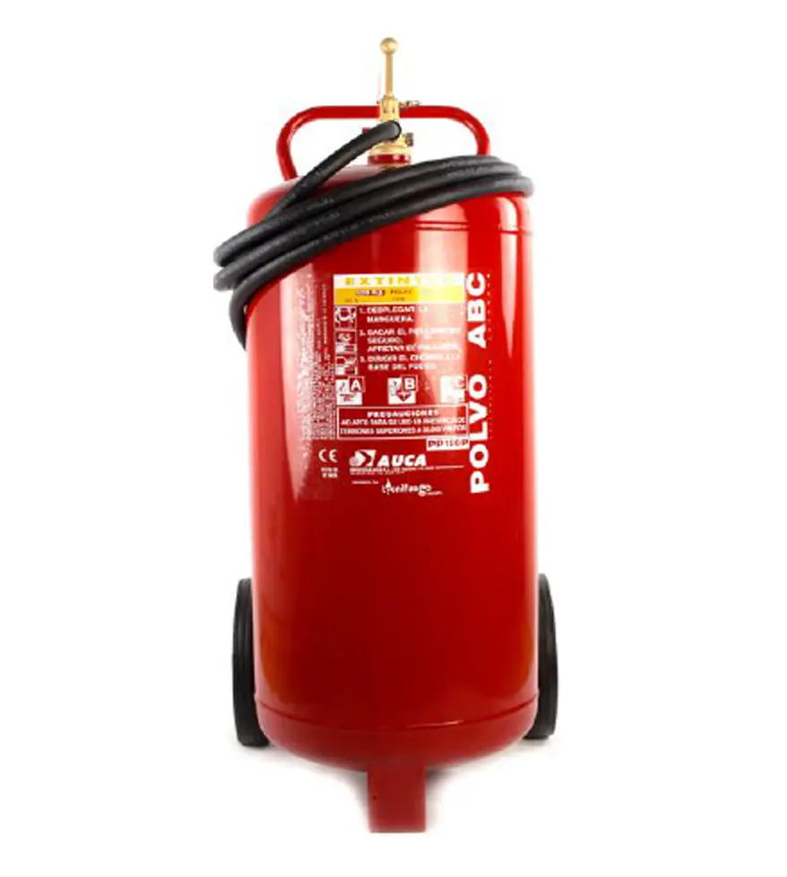 Carro extintor móvil de 100 kg polvo químico seco y presión incorporada. Eficacia 55A IV B C del fabricante AUCA.