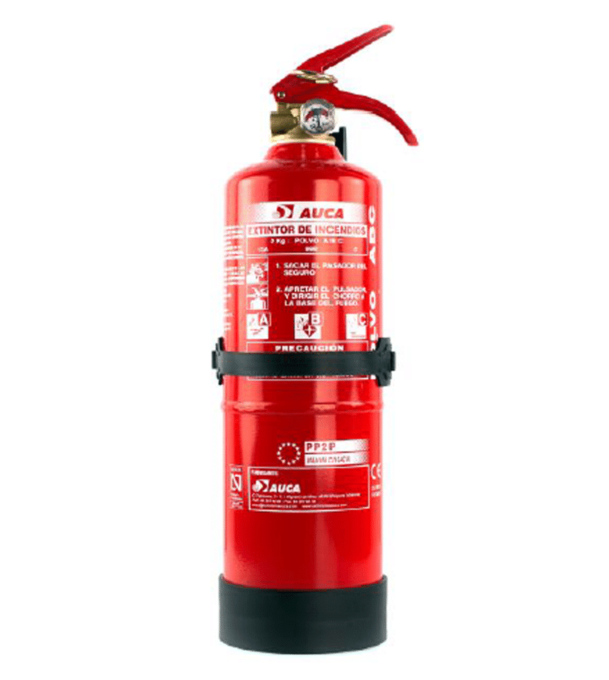 Extintor de 2 kg polvo químico seco y presión incorporada. Eficacia 13A 89B C del fabricante AUCA.