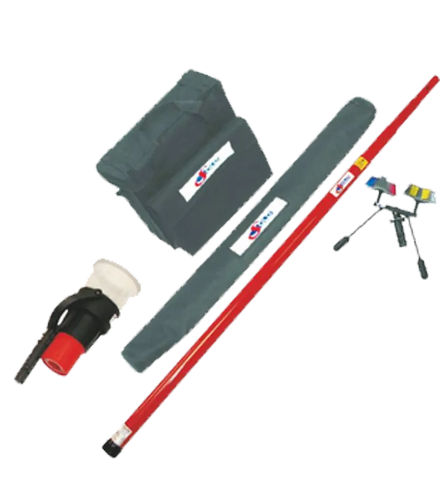 El conjunto para mantenimiento de detectores de humo está formado por un dosificador de humo SOLO 330 y una barra telescópica de 4,5 m SOLO 100 en fibra de vidrio que permite probar fácilmente detectores colocados a 6 m de altura, una grapa extractora universal para detectores SOLO 200 y una bolsa de transporte SOLO 610 para todo el kit.