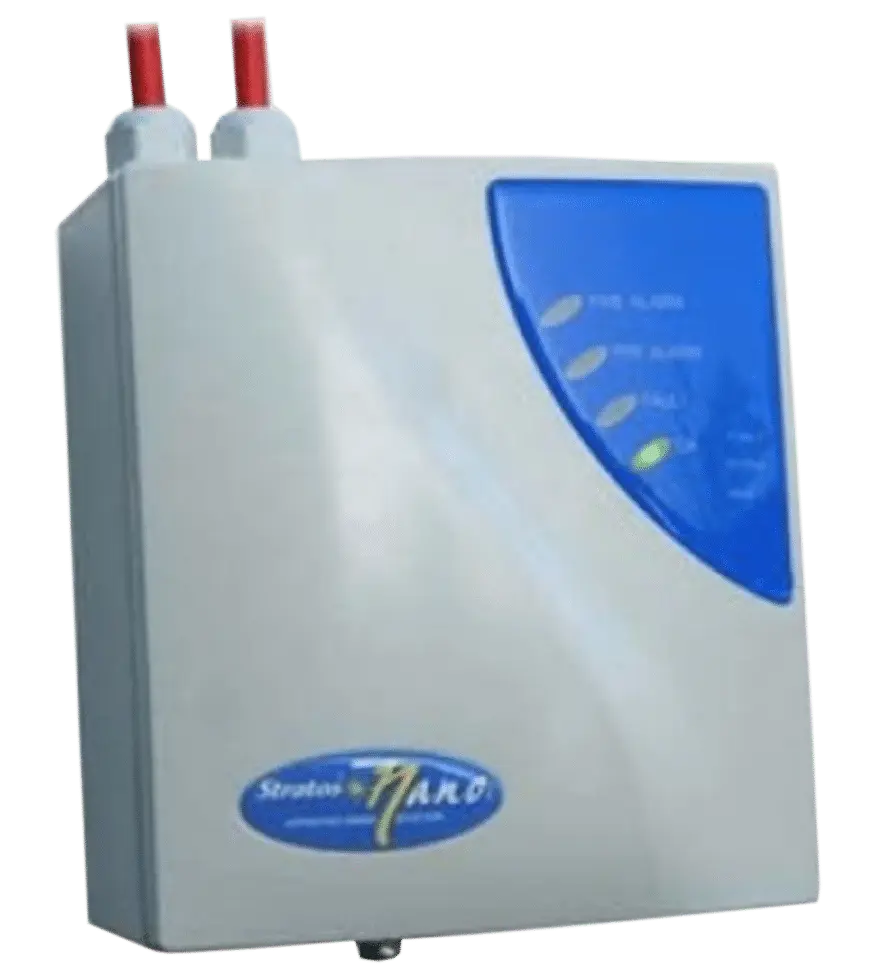 Detectan el humo analizando el aire aspirado a través de los orificios de unos tubos distribuidos por el recinto a vigilar y conducidos a este detector.