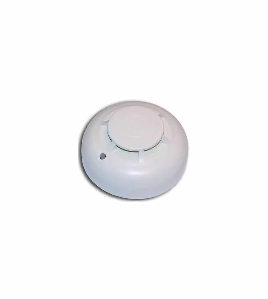 Detector de calor según Norma UNE EN 54-5 con certificado de conformidad CE y marca de calidad AENOR. Unidad algorítmica direccionable que gestiona dos parámetros de temperatura: