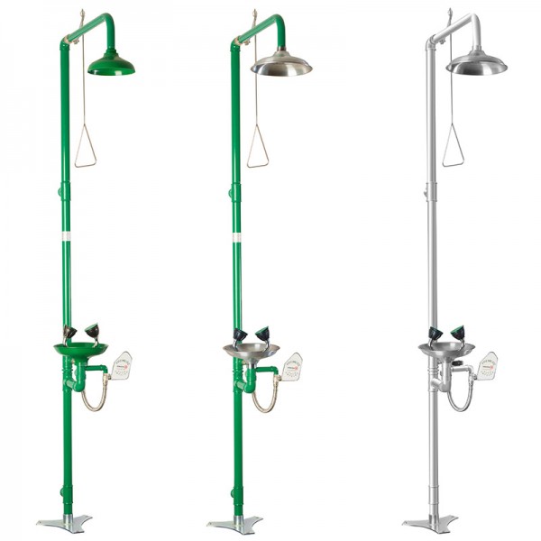 Esta ducha lavaojos de emergencia es adecuada para un primer auxilio en accidentes donde caigan sustancias tóxicas en el cuerpo o en la cara del trabajador.