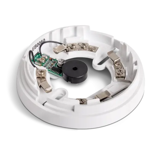 Base de campana estándar para detectores convencionales (IRIS) y detectores direccionables (ENEA) – Inim Electronics. Zumbador integrado accionado por salida “R”