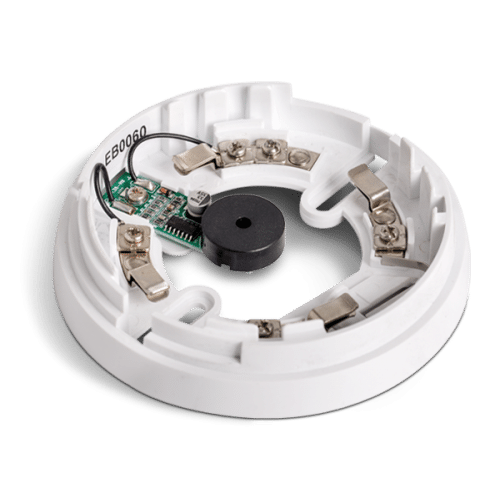 Base de campana estándar para detectores convencionales (IRIS) y detectores direccionables (ENEA) – Inim Electronics. Zumbador integrado accionado por salida “R”