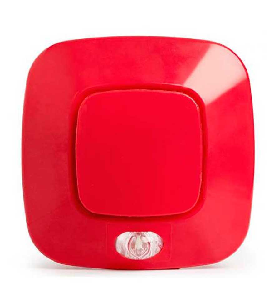 Inim, sirena direccionable roja para montaje en pared, 26 tonos seleccionables y mensajes de voz con 16 para configurar se pueden seleccionar con el panel de control de alarma de incendio direccionable Inim o con el programador EITK2000.