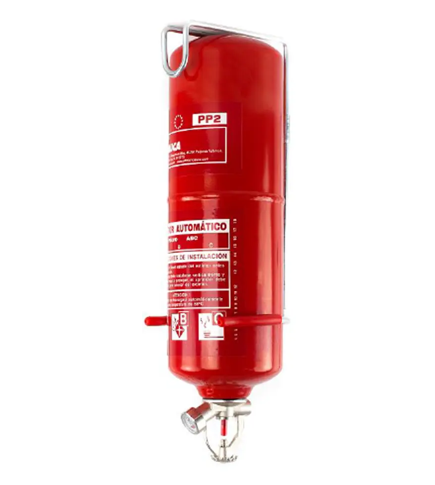 Características del extintor automático de 2 kg de polvo modelo PP2 de AUCA.