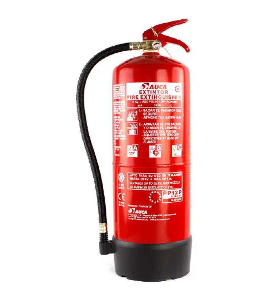Características del extintor de 12 kg de polvo para marina modelo PP12PM de AUCA.