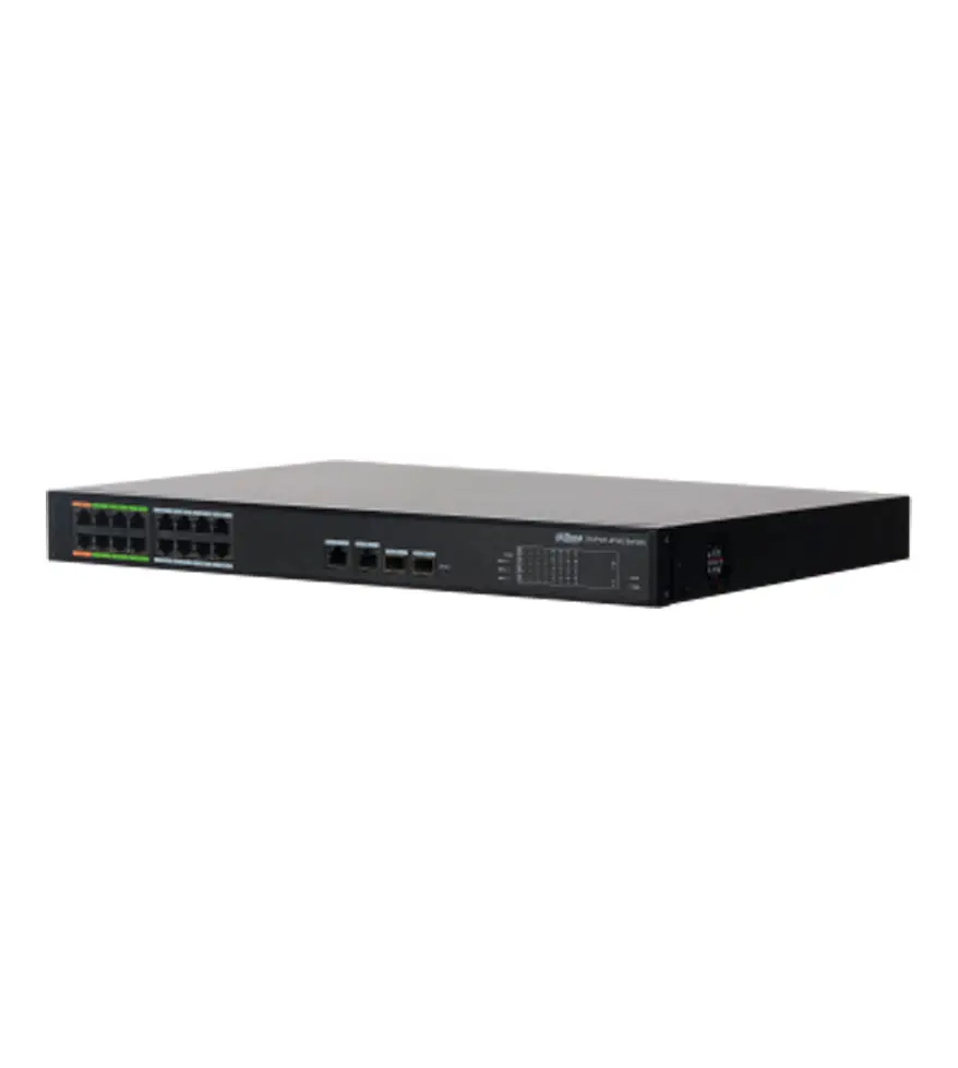 2 * 1000 Base-X (puertos combinados) 16 * 10/100 Base-T (fuente de alimentación PoE) |