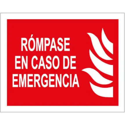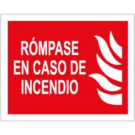 Adhesivo de Rómpase en caso de Incendio.