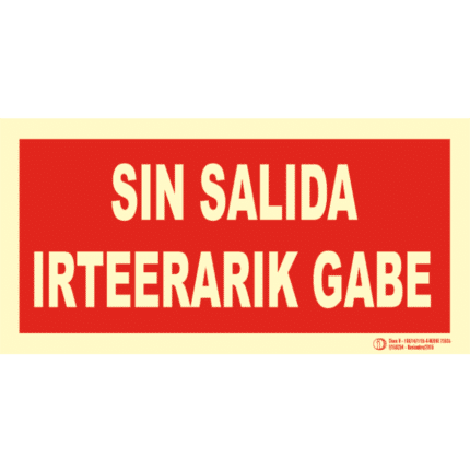 Señal / Cartel Irteerarik gabe. Bilingüe Clase B