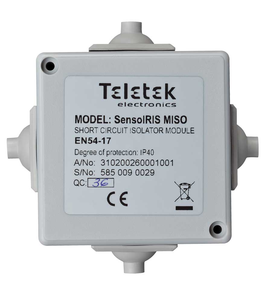 Características de módulo aislante, de acuerdo con EN54-17 SensoIRIS MISO