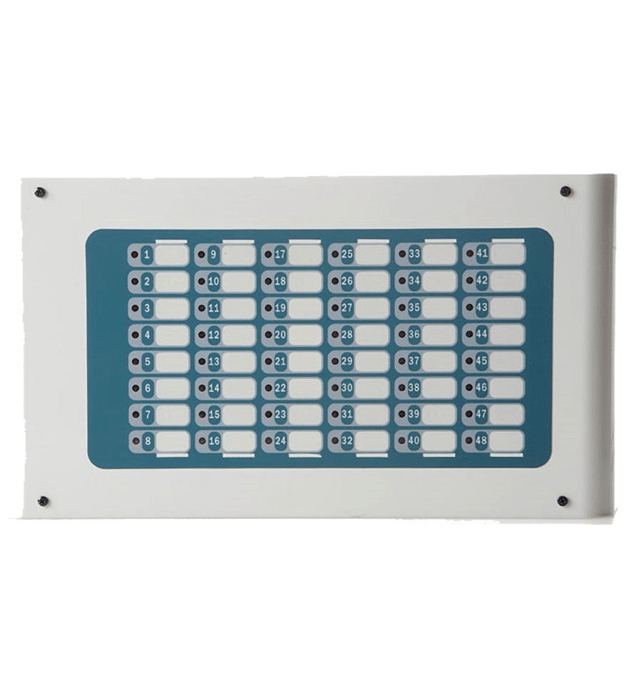 - Dispone de 48 LED de estado de zona; la lógica de tipo ON/OFF de los LED se puede configurar de manera individual durante la fase de programación.