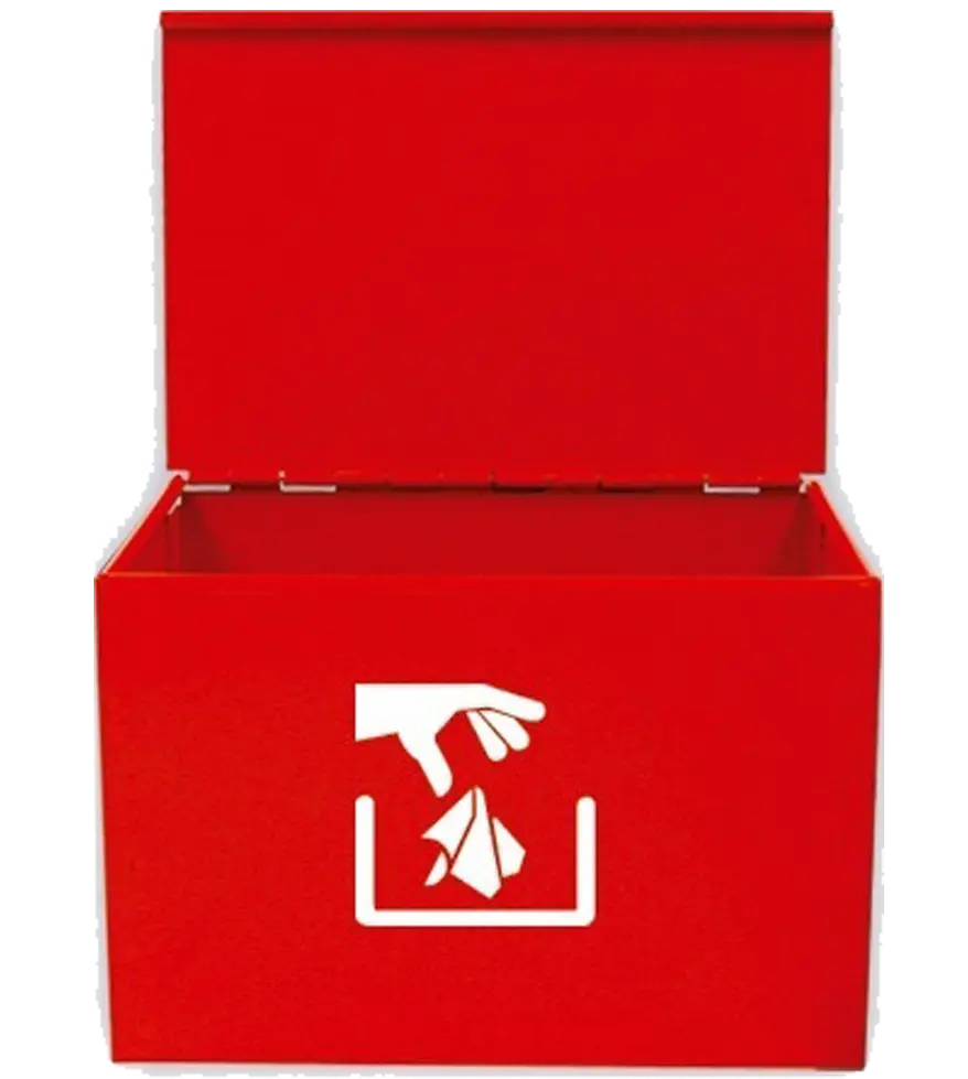 Recipiente destinado a papelera, fabricado en chapa y de color rojo. Cotonera. De Grupo de Incendios