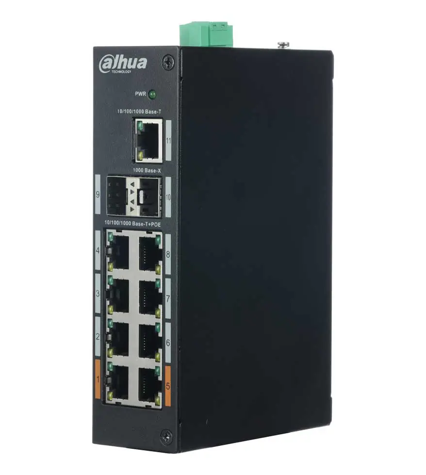 Switch Gigabit de 11 puertos con PoE de 8 puertos. Diseño industrial de temperatura de trabajo amplia: -30 ° C ~ + 65 ° C – Dahua Technology.