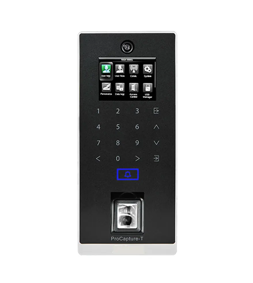 ProCapture-T es un terminal de control de acceso que aplica el sensor de huellas dactilares SilkID más avanzado. Su desempeño sobresaliente proporciona una alta tasa de identificación hacia dedos secos, húmedos y ásperos, siendo capaz de detectar dedo vivo para un mayor nivel de seguridad.