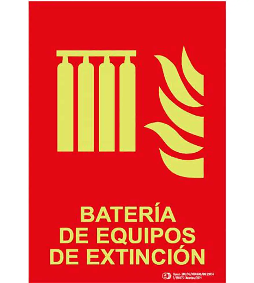 El cartel se utiliza para indicar la ubicación de una Batería de equipos de extinción
