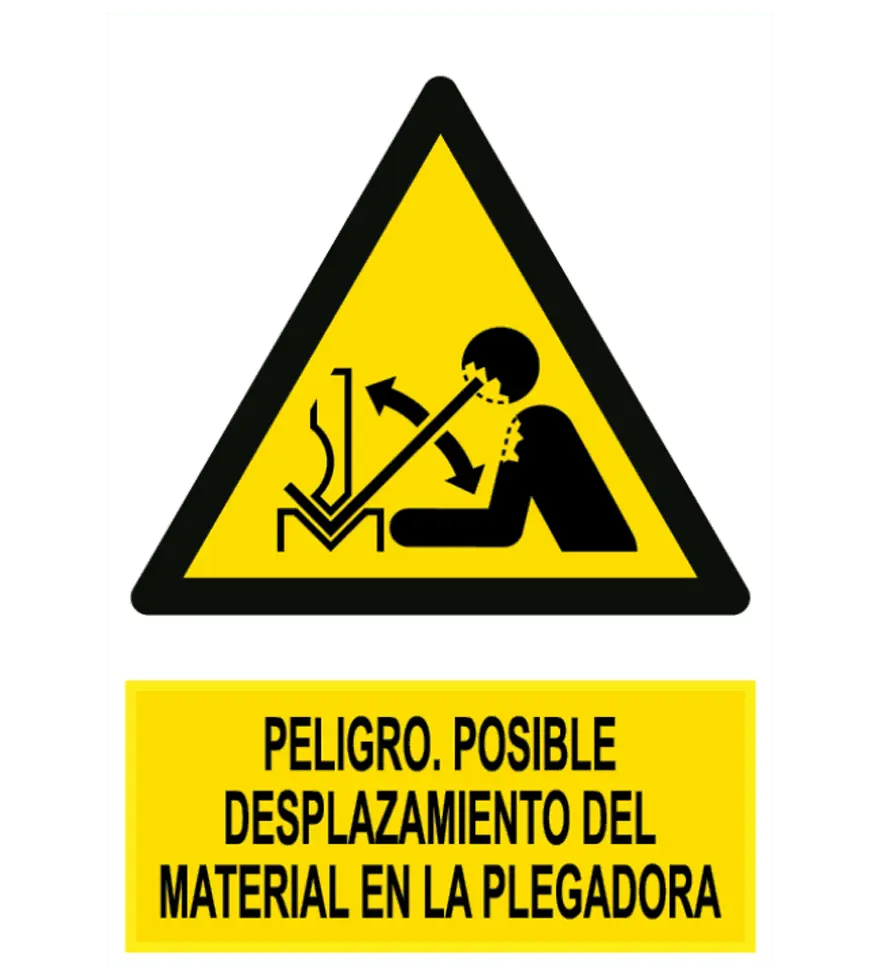 Señal de Peligro. Posible desplazamiento del material en la plegadora.