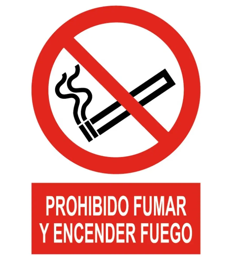 Señal de Prohibido fumar y encender fuego