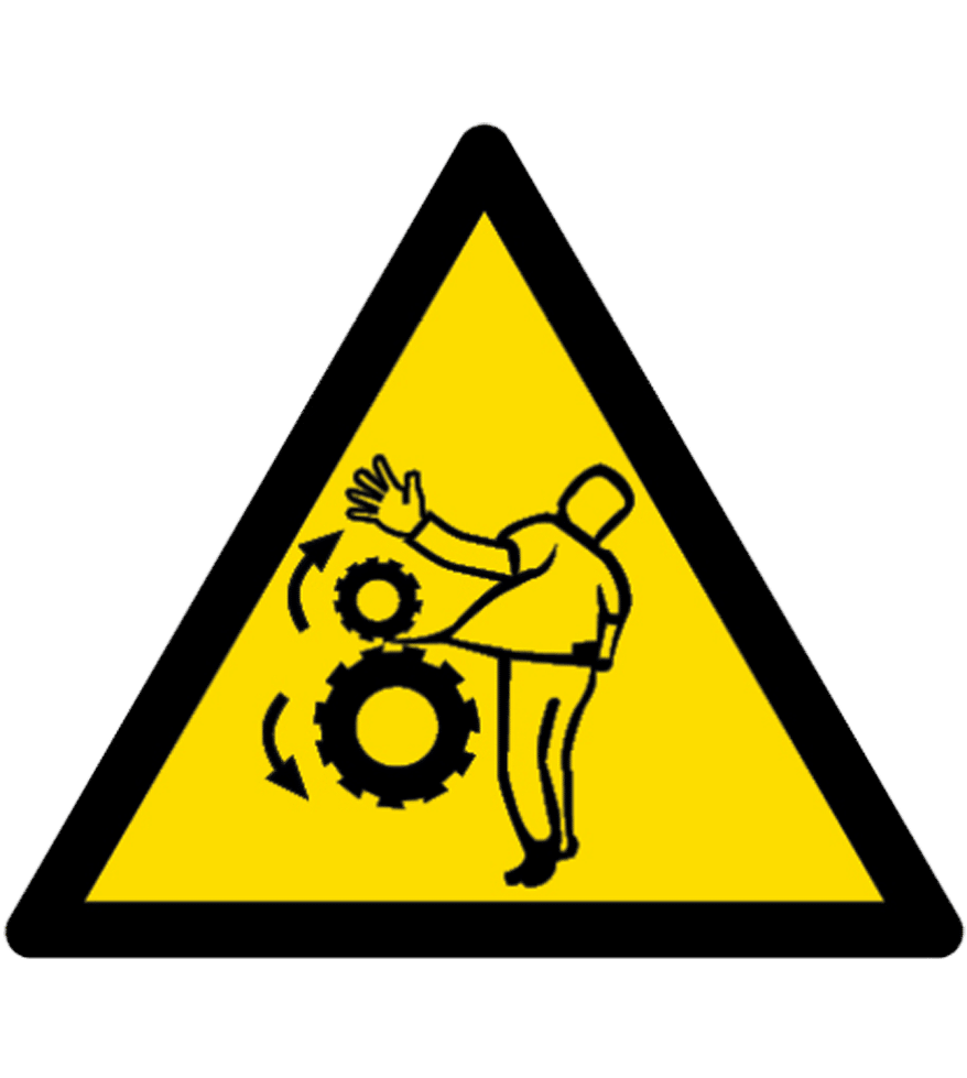 El cartel nos informa de una zona potencial dónde una máquina o un objeto puede dejar atrapada a una persona..