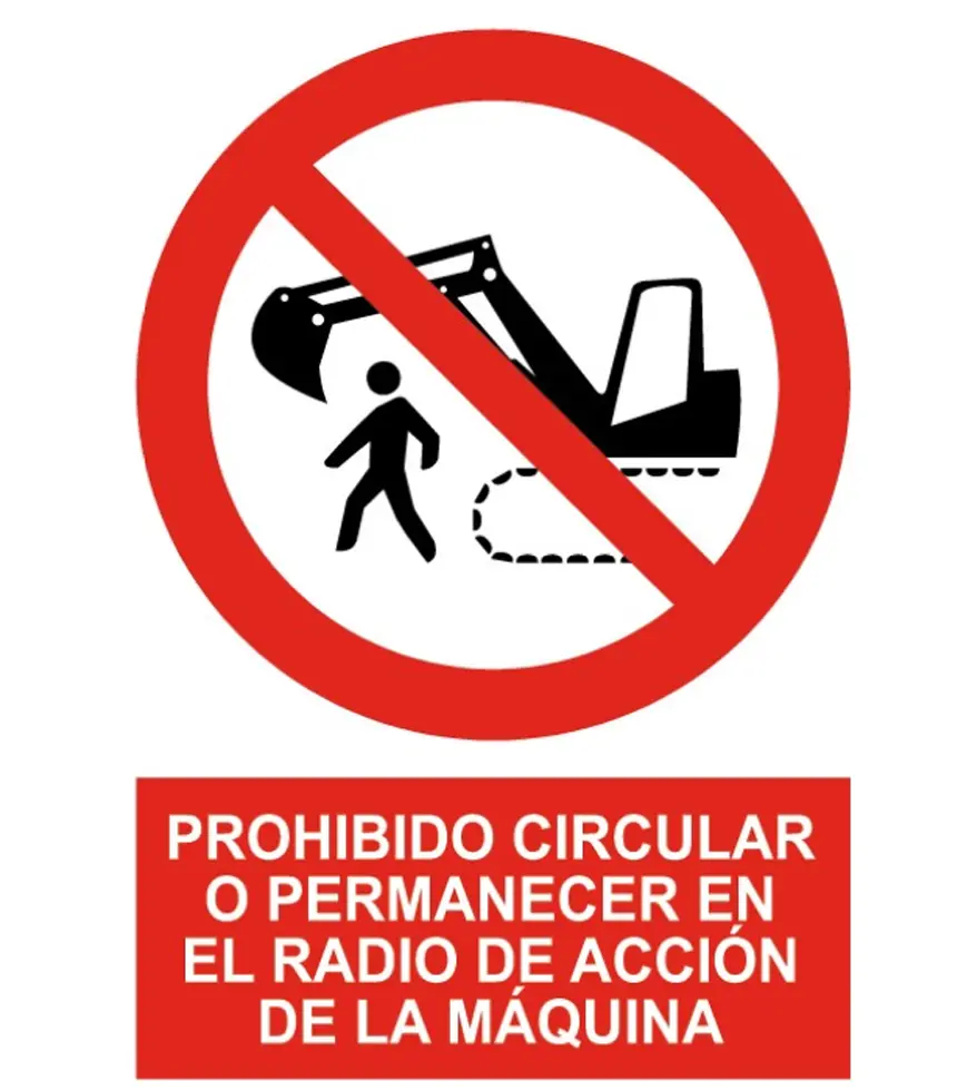 Señal de Prohibido circular o permanecer en el radio de acción de la máquina