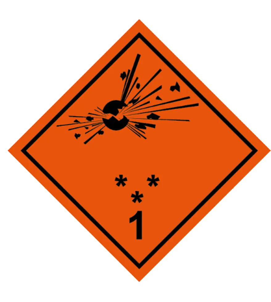 Señal de ADR de Riesgo de Explosión, divisiones 1.1, 1.2 y 1.3