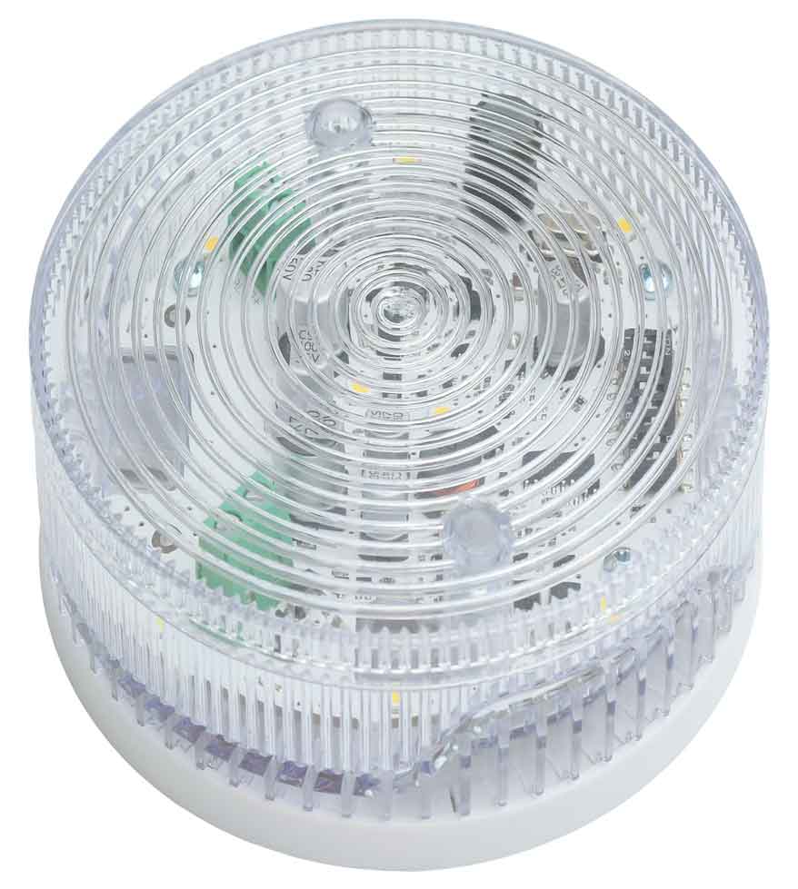 SF100 WSST está diseñado para uso en interiores únicamente. La sirena es fácil de instalar y consta de tres partes: base plana de montaje, sirena y luz estroboscópica combinados en un cuerpo común y una cubierta de plástico transparente.