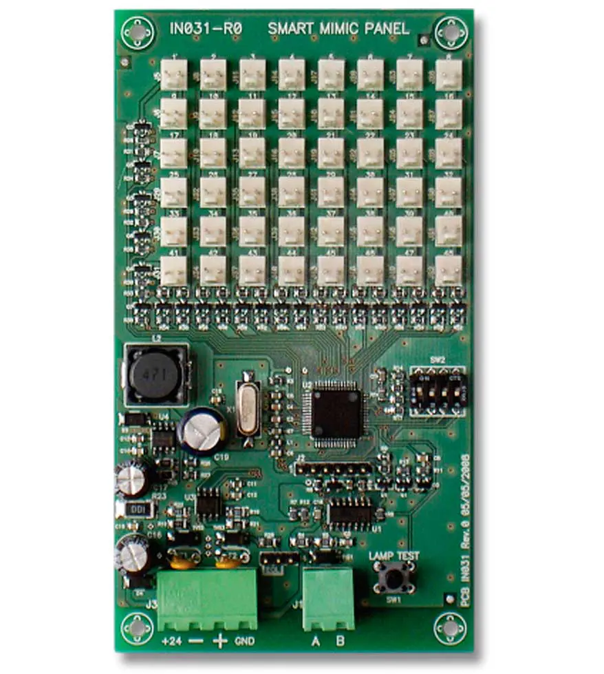 - La placa se conecta al puerto BUS RS485 del panel de control SmartLoop y proporciona 48 conexiones para los cables LED.