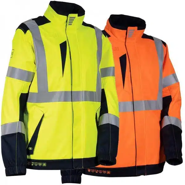 Softshell Cofra Pacaya certificado como ropa de trabajo ingífuga, antiestática, de alta visibilidad, contra arco eléctrico y resistente a productos químicos líquidos.