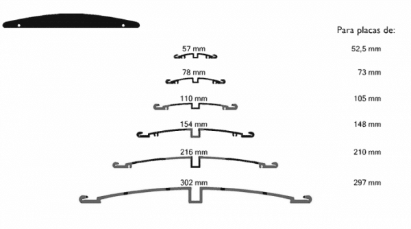 La fijación del perfil puede realizarse mediante tirafondos o usando cinta adhesiva de doble cara. Los laterales se cierran con unas tapas plásticas de color negro que se fijan por tornillos al propio perfíl.