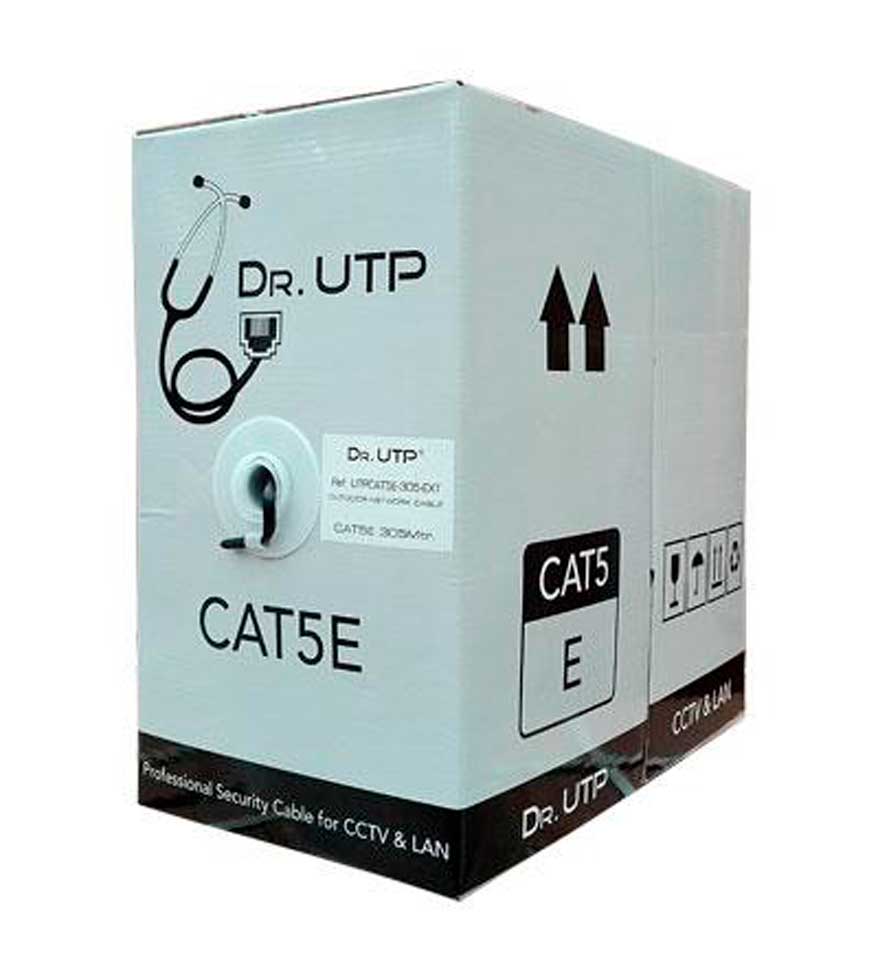 Bobina 305mts Cable UTP CAT5e para exteriores 0.50mm Cubierta PE Negra. Longitud de 305m y con cable de 0.50m. – Drutp.