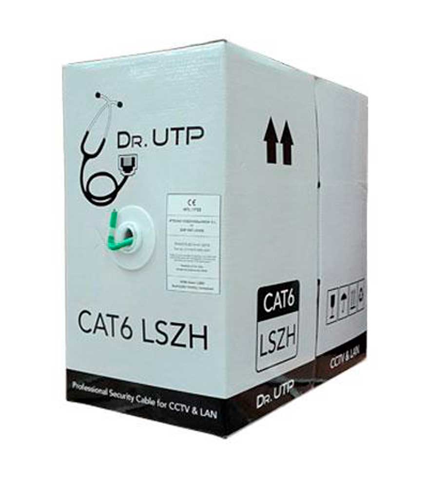 Bobina 305mts Cable UTP CAT6 Libre de Halógenos 0.57mm CPR Cubierta LSZH Verde. Certificado CPR. – Drutp.