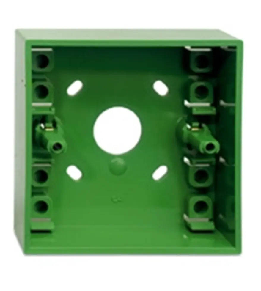 Zócalo base para la conexión en montajes de superficie, sin terminales para pulsador DMN700G. Permite la entrada 1 a 4 tubos de hasta 20 mm, material ABS en color verde.